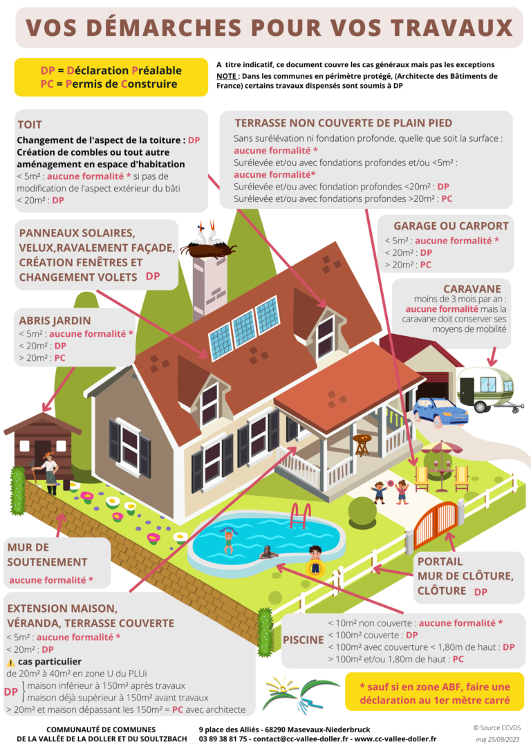 Retrouvez ici les fiches d’aide réalisées par la Communauté de Communes pour vos projets. Ces fiches ont pour but de vous accompagner dans la formalisation de vos demandes pour certains projets (piscine, abris de jardin…)