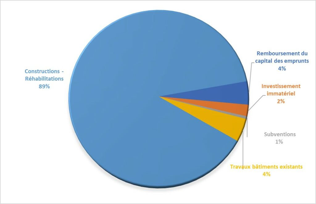 Le budget d’investissement est le budget des dépenses visant à accroître la valeur du patrimoine. Il s’agit principalement d’opérations d’équipement comme les nouvelles constructions, les travaux de réhabilitation ou encore l’acquisition de matériel.