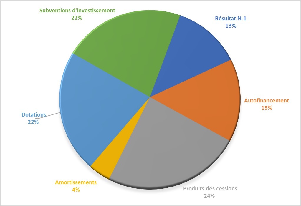 Les recettes d’investissement servent à financer les grands travaux de la collectivité. Elles sont constituées du résultat de l’année précédente s’il est positif, de l’autofinancement dégagé par la section de fonctionnement, de l’amortissement des biens des années précédentes, des ventes de terrains ou bâtiments et des subventions. Si ces recettes ne suffisent pas à équilibrer les dépenses, la collectivité a recours à l’emprunt.
